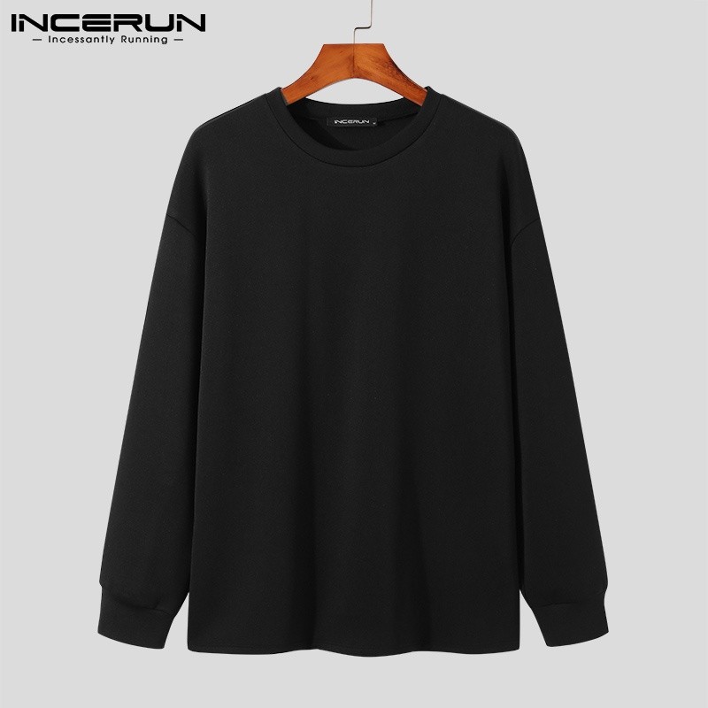 INCERUN Men's Fashion Casual Long Sleeve Solid Color Round Neck Sweatshirt